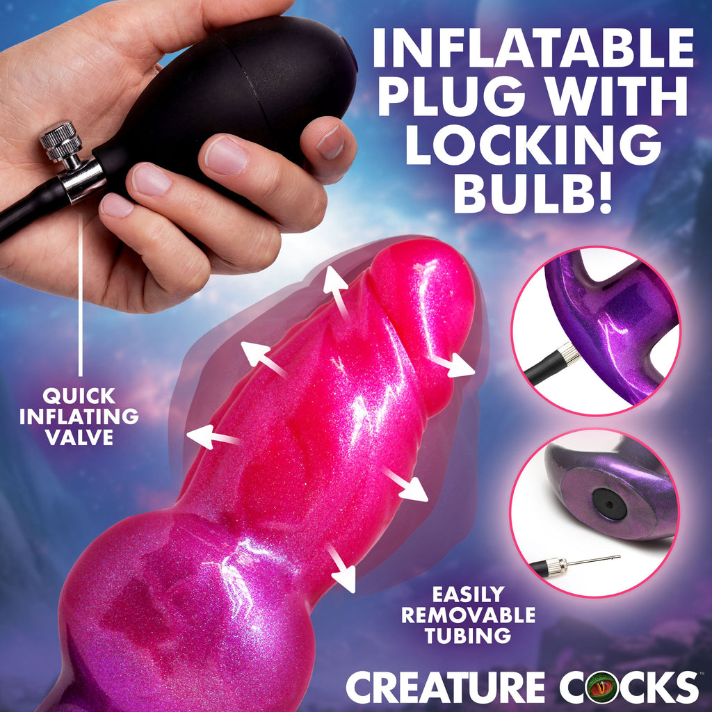 This is not a smooth plug that happens to inflate. The shaft is covered in thick veins and raised bumps that catch against your hole on the way in and keep catching the entire time it is inside you. It goes in at 2.4 inches with a tapered tip, and between the veins and the fat mid-shaft bulge your ass is already working before you touch the pump. You know what you are holding. Your cock knows too.