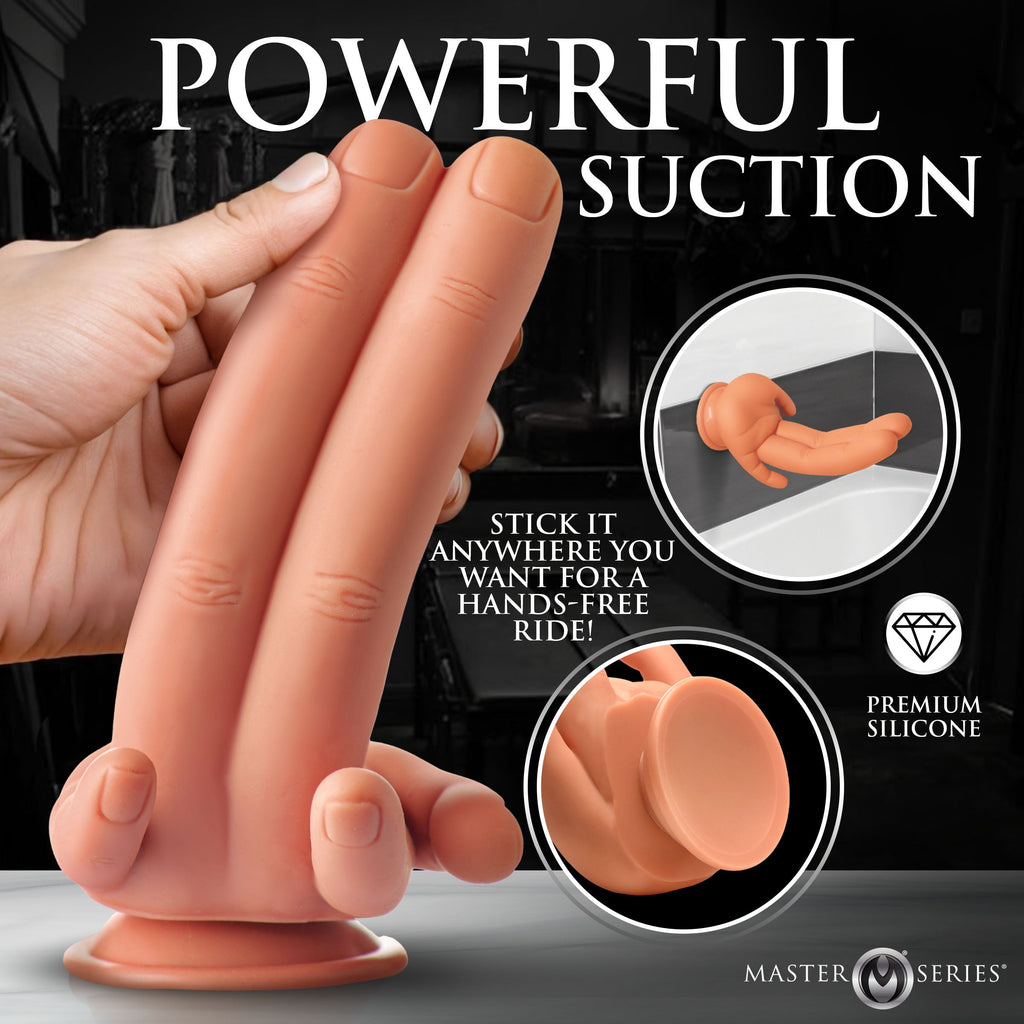 Fierce Fingering: This long, two-fingered dildo lets you ride the fingers and sit in its palm while the other three tickle your taint!