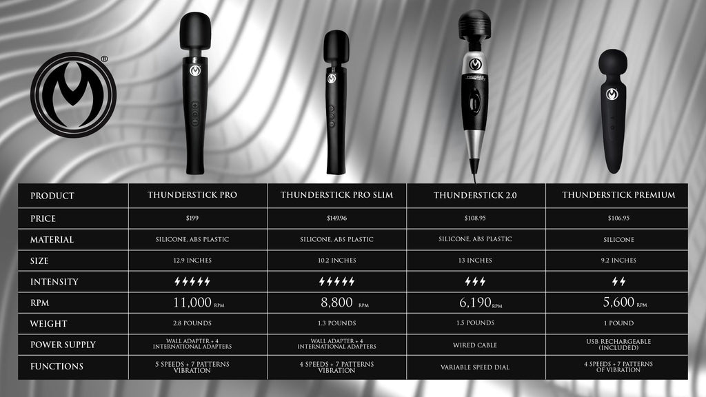 This Thunderstick Pro Slim Wand Massager proves that serious power doesn’t need a bulky frame. Driven by an 8800 RPM motor, this sleek wand delivers deep, rumbly vibrations through four speeds and seven vibration patterns — giving you full control over intensity.