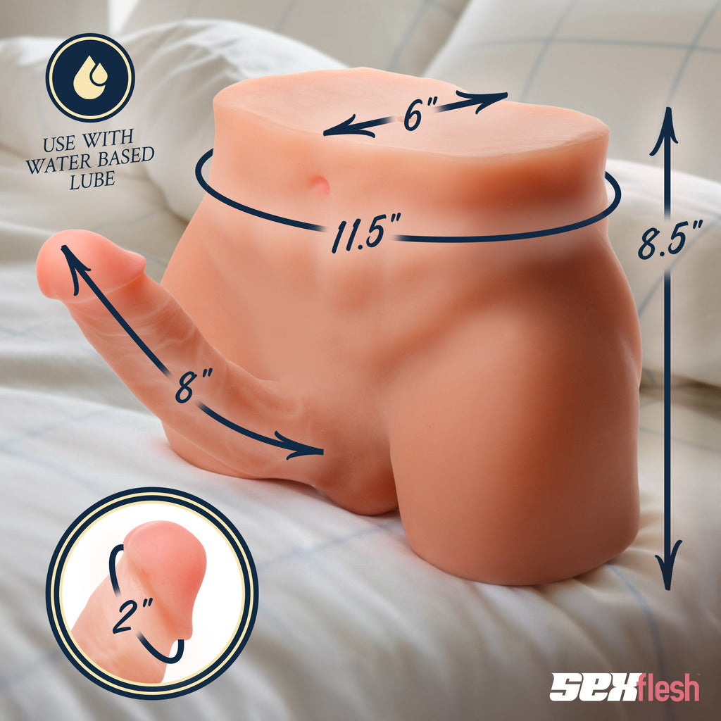 Tom is crafted for realism and sexual pleasure. The ass is extra-soft fleshlike material. Meanwhile the cock, balls, and the lower ab area are more solid on the inside will still being slightly flexible. With the cock's solid core and fleshy exterior, it feels very real. You can even adjust the angle of the cock for the perfect penetration.