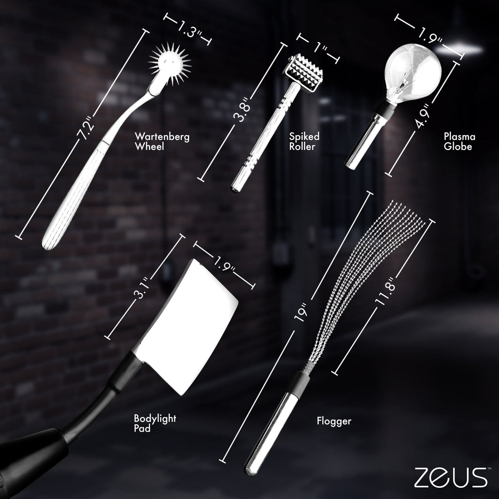 Metal Components: Enjoy using conductive sensation tools such as the Wartenberg wheel, the Rollenstein, the ball chain flogger, and the body contact plate that allows your fingertips and body to conduct the electricity with each touch!