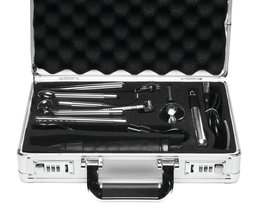 All In One Kit: Everything you need for violet wand electrostim play packed neatly away in a protective metal case.
